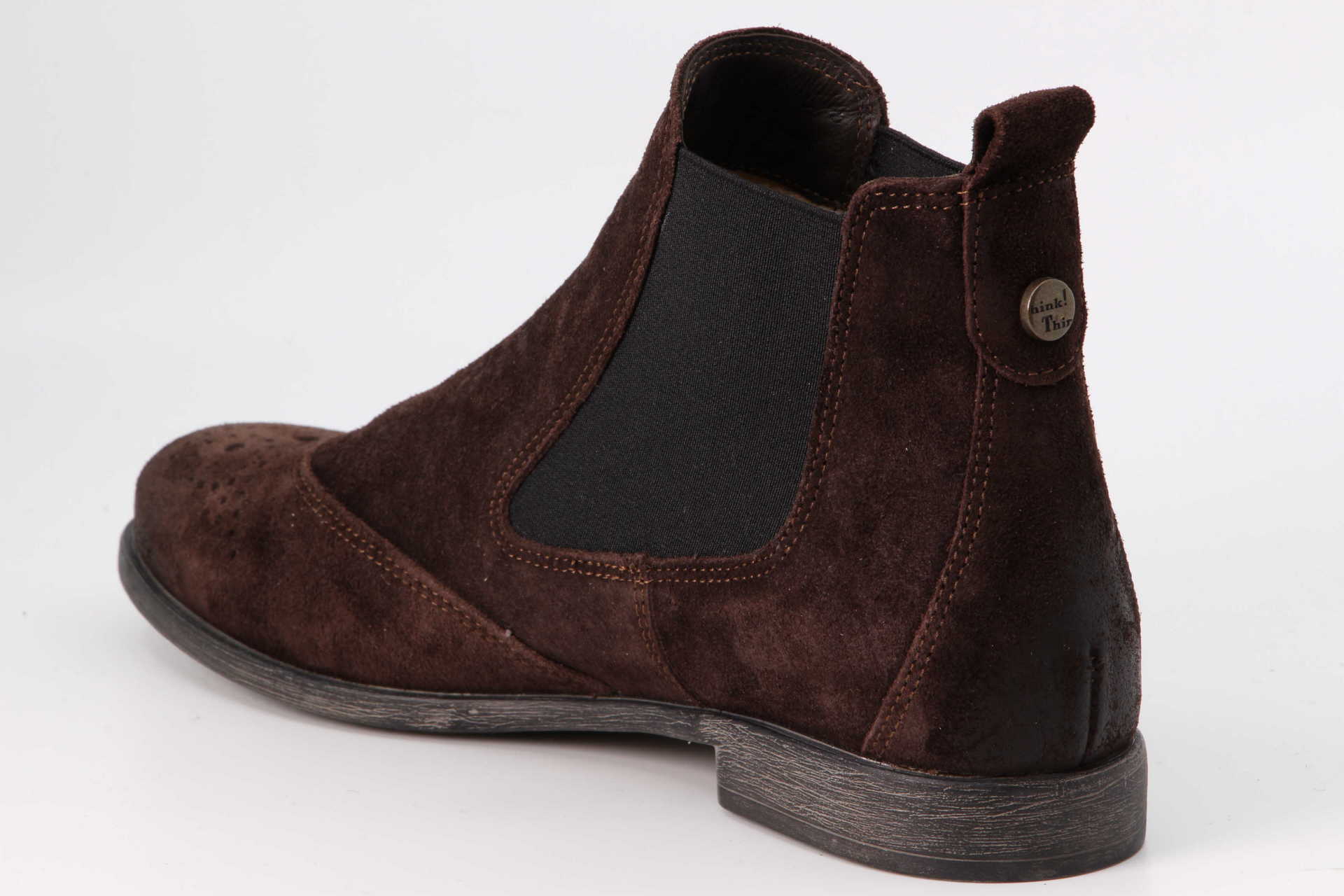 Die praktische AGRAT Stiefelette zum Reinschlüpfen in stylischem Chelsea Boot Look hat wunderschön gestanzte Lederdetails am Vorderfuss. Aus chromfrei gegerbtem Kalbleder oder besonders hochwertigem Veloursleder mit Brushed-Effekt gefertigt, überzeugt der Think! Boot mit schlichter Eleganz. Die Strecheinsätze garantieren einen leichten Einstieg in den Schuh.