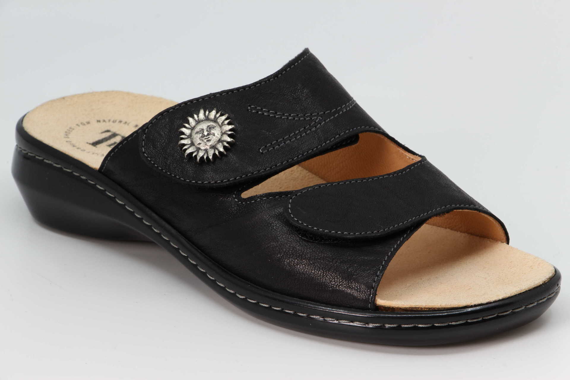 Die Tieffussbettpantolette CAMILLA ist nicht nur äusserst bequem, sondern mit den dezenten Ziernähten und dem Knopf am oberen Riemen auch besonders schön. Die Fertigung der Pantolette entspricht dem Think! typischen Anspruch an Nachhaltigkeit. Durch die Klettverschlüsse lässt sich der Hausschuh perfekt an den Fuss anpassen. So wird CAMILLA zum reinsten Gehvergnügen. Alle CAMILLA Modelle sind mit einem Wechselfussbett ausgestattet.