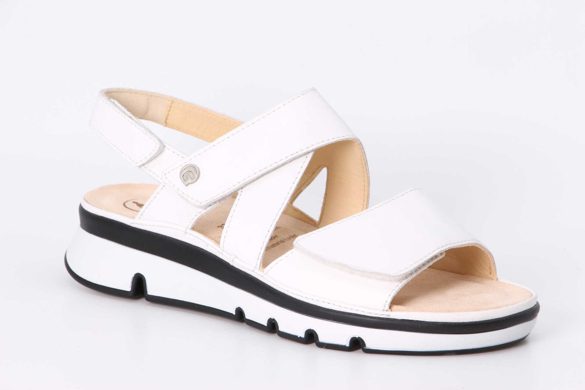 GIANNA ist eine zeitgemässe Ergänzung der GANTER Sandalen-Kollektion. Die markante und dennoch sehr leichte Sohle erhält ihre trendige Optik durch den Mix aus Schwarz und Weiss. Die individuell einstellbaren Klettriemen schmiegen sich dank des Lederfutters soft an die Haut – aus der hervorragenden Passform ergibt sich ein erstklassiger Tragekomfort. Das hochwertige Glattleder ergänzt in Kombination mit der raffinierten Kreuz-Optik jede Sommergarderobe. GIANNA begleitet Sie in den Urlaub, zum Grillfest oder zum Bummeln mit der besten Freundin – und ist dabei so bequem, dass Sie sich wie barfuss fühlen.