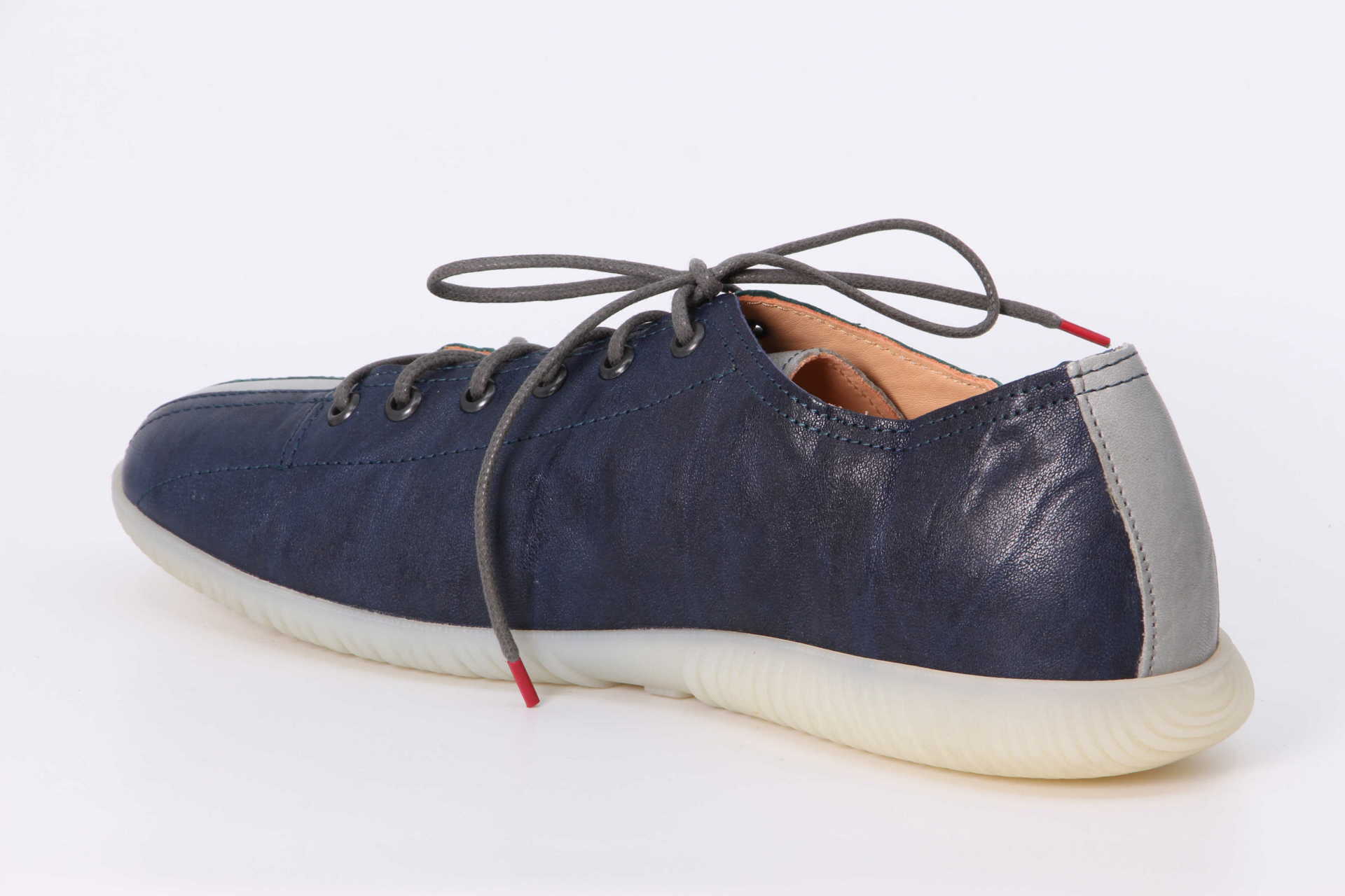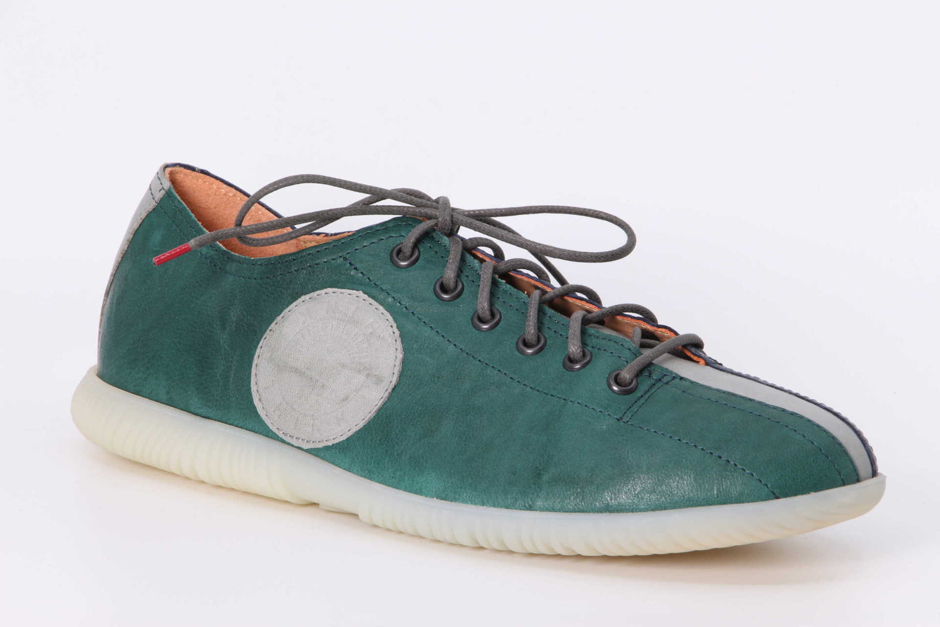 Individuell wie kein zweiter ist der Sneaker HAUKI. Der Think! Halbschuh mit dem runden Emblem auf einer Seite besteht aus zwei verschieden farbigen Hälften, die durch einen schmalen Kontraststreifen getrennt sind. Das weiche Leder trägt sich dabei genauso angenehm, wie die flexible Latexsohle mit ihrem dämpfenden Effekt. HAUKI ist eben aussergewöhnlich – auch was den Tragekomfort betrifft.