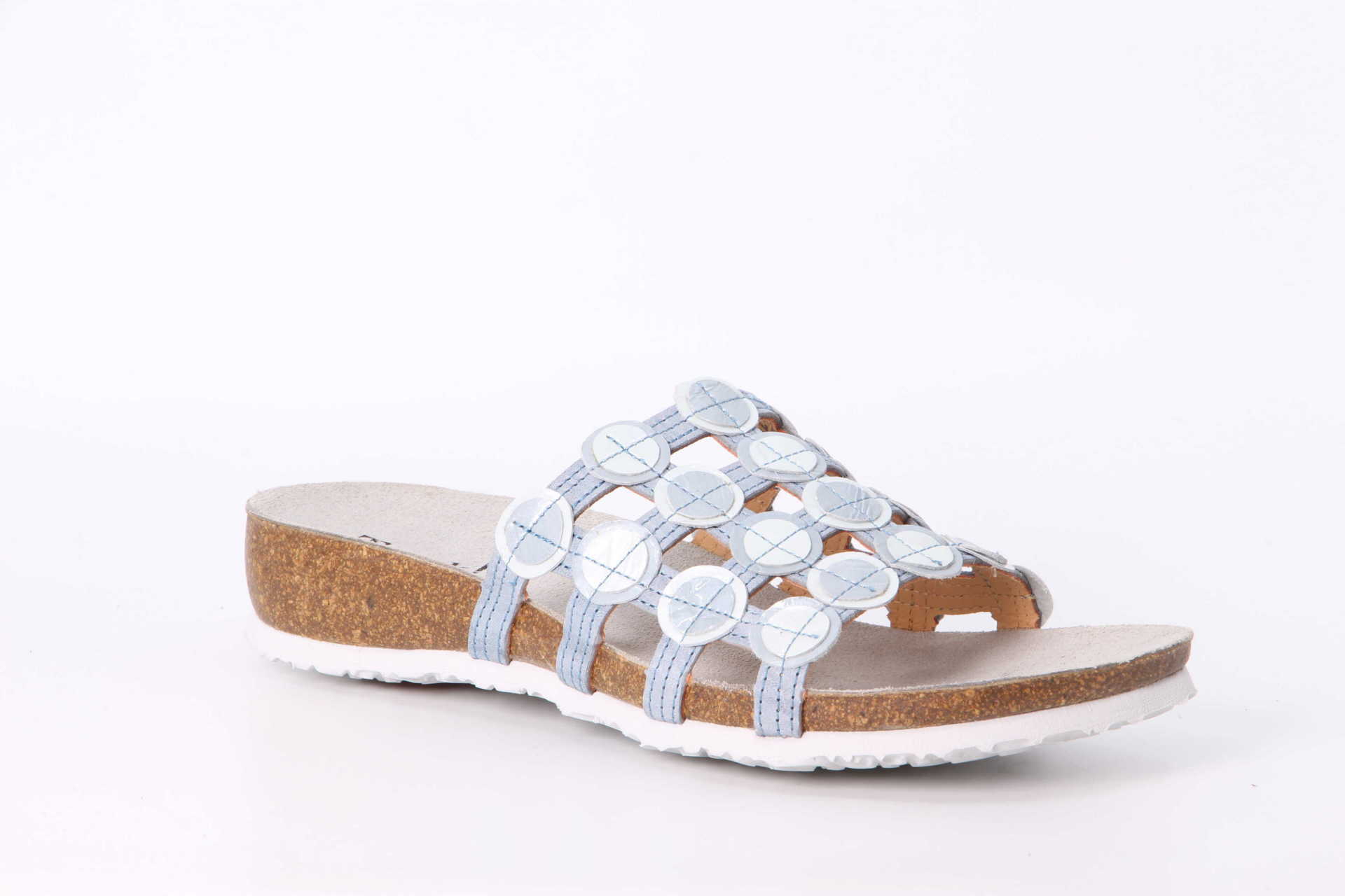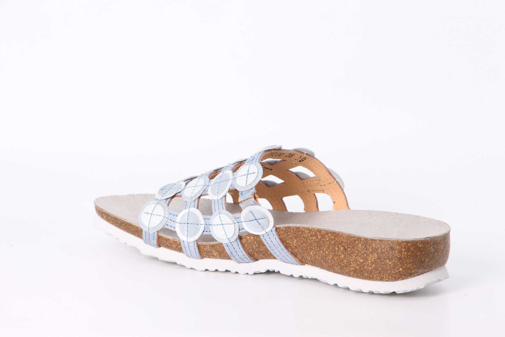 Luftig, stylish und fröhlich ist die Tieffussbettpantolette JULIA genau richtig für den Sommer. Das Material der Think! Pantolette schmiegt sich angenehm an den Fuss und garantiert einen ausgezeichneten Tragekomfort. Die breite Anordnung der gitterförmig angelegten Riemchen über dem Rist sorgt für optimalen Halt. Die verspielten Leder-Kreise und farbigen Sohlen machen JULIA zum echten Highlight.