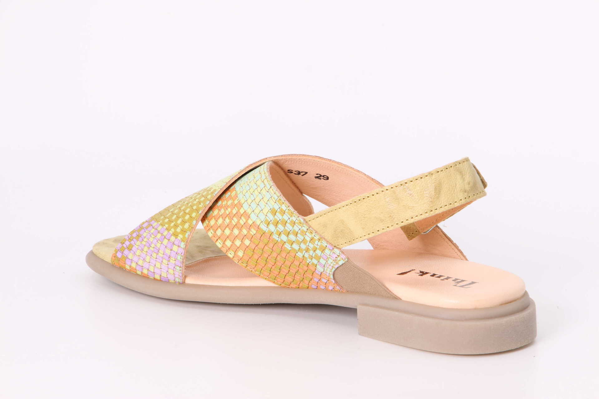 Schön verflochten zeigt sich die Sandale KAMAA. Dank flexibler Gummisohle kommt man mit diesem Think! Schuh gut gedämpft durch den Sommer. Der verstellbare Fersenriemen sorgt dabei für festen Halt. Aus besonders weichem Nappaleder gefertigt, fühlt sich das Modell am Fuss ausgesprochen angenehm an. Eine Sandale für viele Gelegenheiten gerade richtig ist.