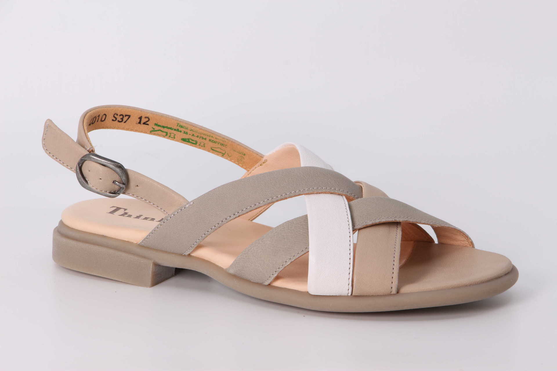 Schön verflochten zeigt sich die Sandale KAMAA. Dank flexibler Gummisohle kommt man mit diesem Think! Schuh gut gedämpft durch den Sommer. Der verstellbare Fersenriemen sorgt dabei für festen Halt. Aus besonders weichem Nappaleder gefertigt, fühlt sich das Modell am Fuss ausgesprochen angenehm an. Eine Sandale für viele Gelegenheiten gerade richtig ist.