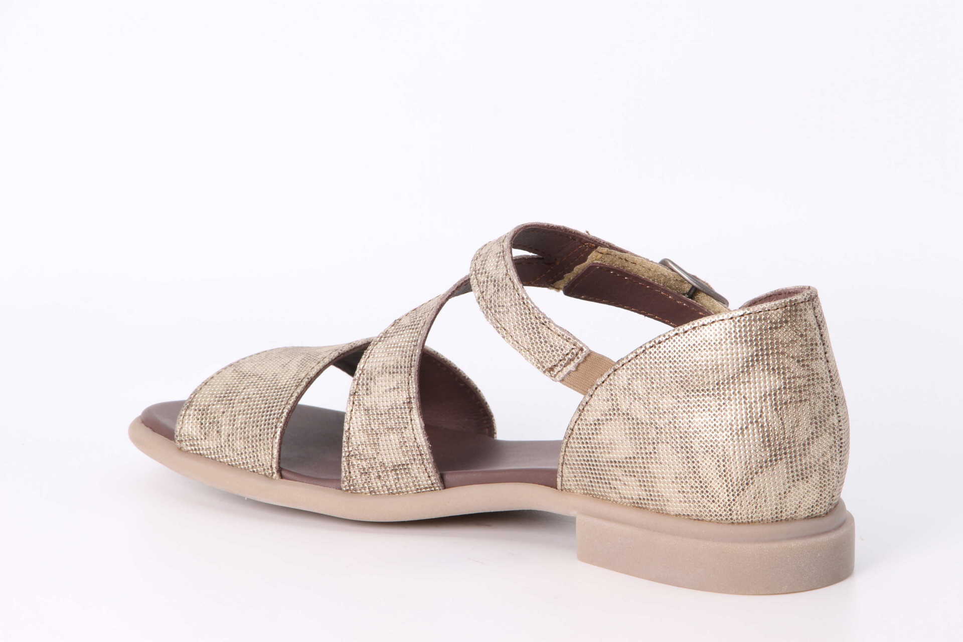 Ein wahrer Fussschmeichler ist die luftige Riemchensandale KAMAA mit ihrem schmalen Querriemen über dem Rist, dem Knöchelriemchen mit der feinen Schnalle und dem etwas breiteren Riemen vorne. Die geschlossene Ferse der Think! Sandale macht sie büro- und ausgehtauglich und gibt dem Fuss extra Halt. Für viel Tragekomfort sorgen bei KAMAA das anschmiegsame Leder sowie das gepolsterte Fussbett – perfekt für lange Sommertage.