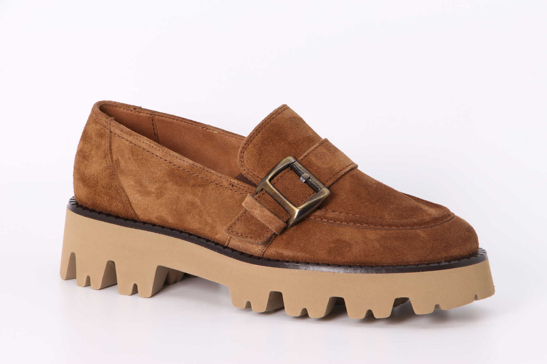 Mit diesem SUPER SOFT Loafer von Paul Green sorgen Sie für einen modischen Twist zu Ihren Outfits. Das angenehme Veloursleder in Mittelbraun verleiht den Mokassins ein zauberhaftes Modebild. Die seitliche Schnalle unterstreicht die Charakteristik dieses Lieblingsstücks. Eine markante Profilsohle unterstreicht den trendigen Look und sorgt für einen sicheren Auftritt. Besonders zu lässigen Street-Style-Looks machen diese Loafer eine gute Figur!