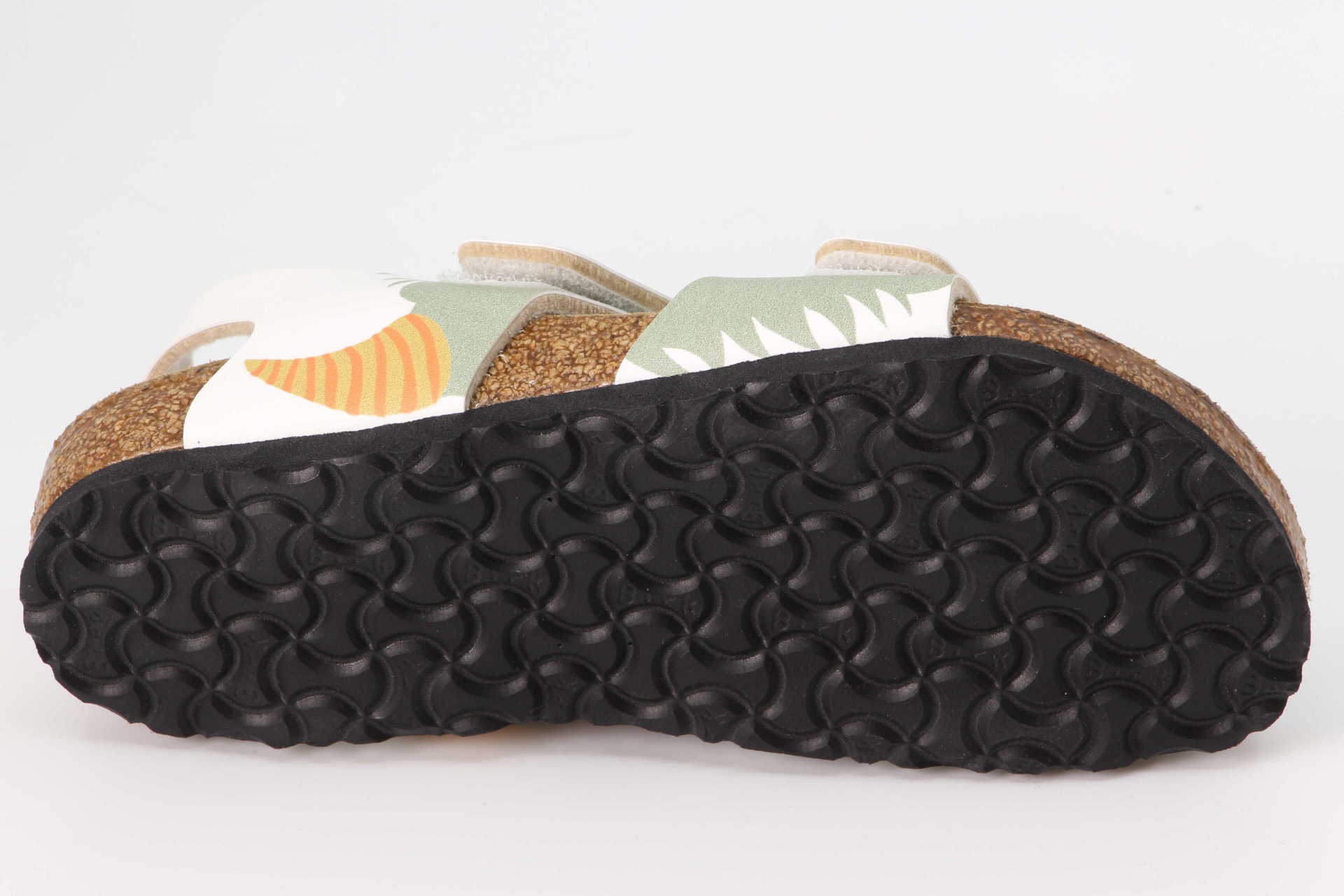 Birko-Flor besteht aus einem pflegeleichten und hygienischen PVC-Kunststoff, der an der Innenseite mit einer weichen, atmungsaktiven Schicht aus Vlies verbunden wurde. Das hochwertige Material ist hautfreundlich, vermittelt ein angenehmes Tragegefühl und ist dabei zugleich sehr strapazierfähig. 100% made in Germany. Anatomisch geformtes Kork-Latex-Fussbett.