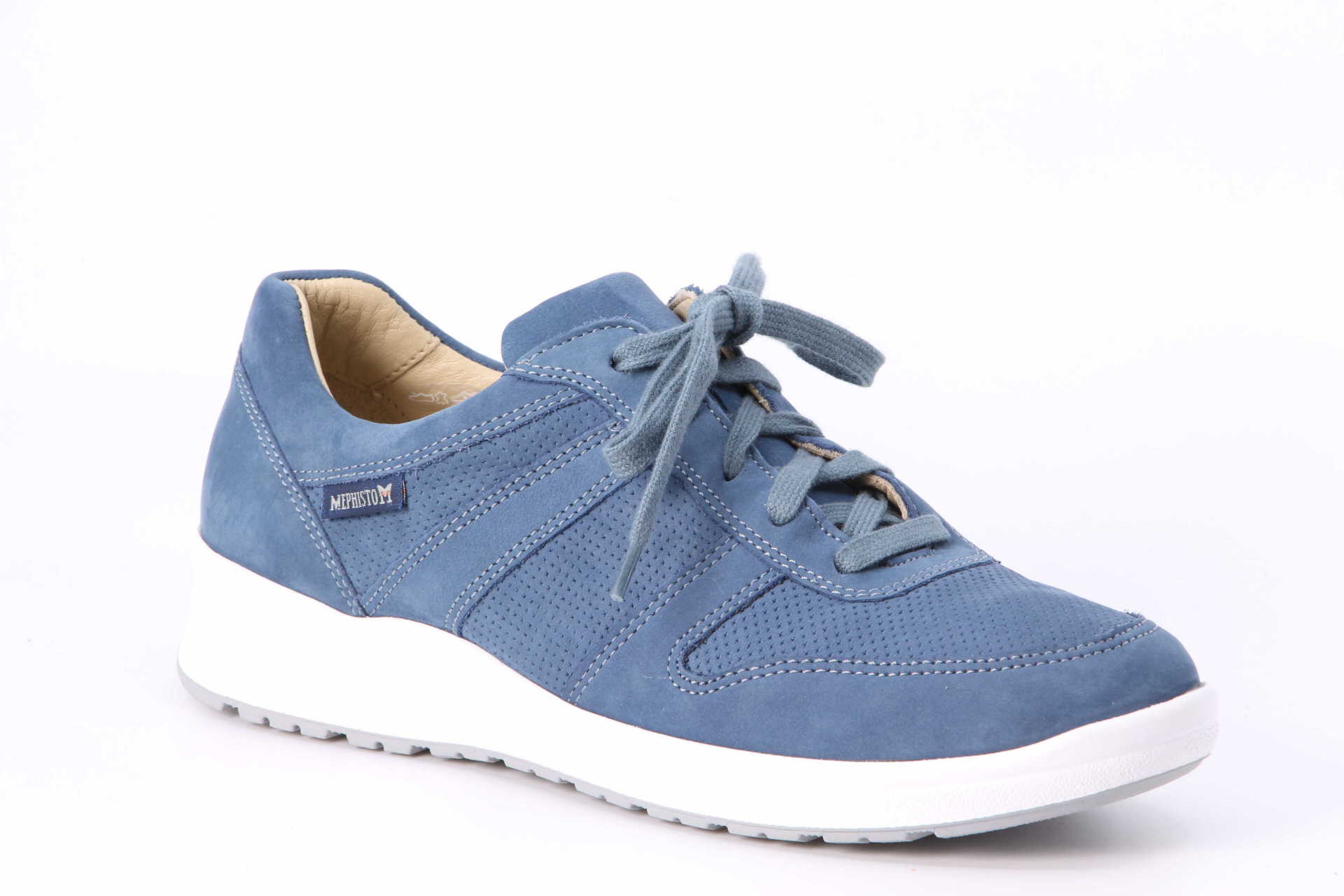 MEPHISTO REBECA PERF | Damen Sneaker blau Nubukleder. Dieser fein perforierte Sneaker passt sich an alle Umstände an und vermittelt ein Gefühl von Wohlbefinden und Leichtigkeit. Der SCHOCKABSORBER in der Laufsohle und das Wechselfussbett mit SOFT-AIR- Technologie tragen dazu bei, Auftrittsstösse auf ein Minimum zu reduzieren und sorgen für einen moosweichen, ermüdungsfreien Gang. Dieser Schnürschuh garantiert optimalen Komfort. Das Futter besteht aus Leder mit einer textilen Note, damit der Fuss guten Halt hat.