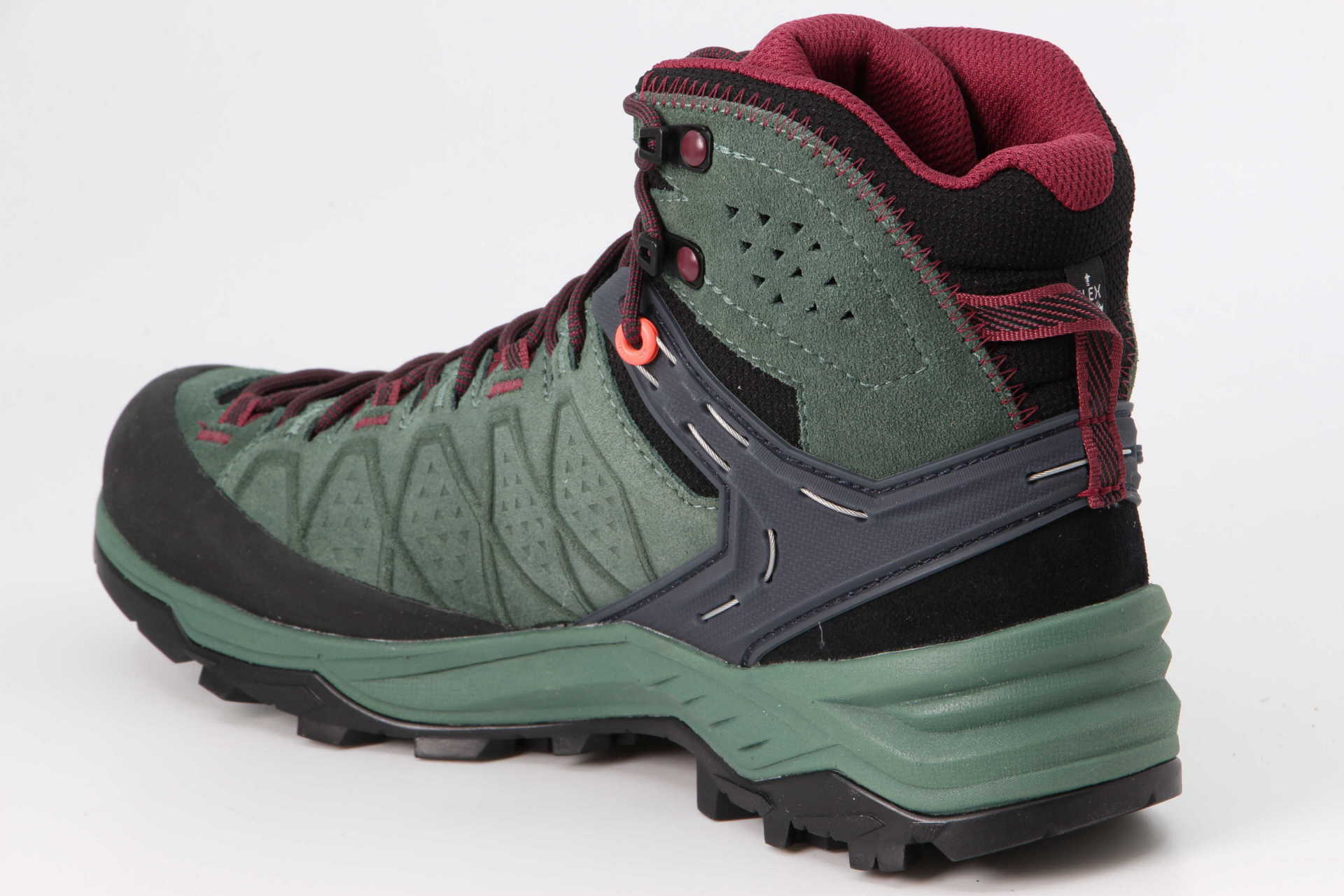 Der Alp Trainer 2 ist ein moderner Wanderschuh mit halbhohem Schaft, der dich bei weiten Wanderungen auf rauem Gelände zuverlässig schützt. Er hat ein robustes, hochwertiges Veloursleder-Obermaterial mit strapazierfähigen Stretcheinsätzen an der Zunge und ein wasserdichtes, atmungsaktives GORE-TEX® Extended Comfort Futter. Der grosszügige Gummirand bietet zusätzlichen Schutz vor Felskanten und Geröll. Der Schuh wurde speziell für Damen entwickelt, um die besondere Form des weiblichen Fusses zu berücksichtigen. Er hat eine präzise Passform, gibt deinem Fuss Halt und ist gleich beim ersten Anziehen bequem. Unser patentiertes 3F System sorgt für festen Halt am Knöchel und seitliche Stabilität auf rauem Terrain, während der weiche Flex Collar dem Knöchel mehr Bewegungsfreiraum gibt und bergab den Tragekomfort erhöht. Mit dem anpassbaren SALEWA® Multi Fit Footbed Plus (MFF+) kannst du zwischen verschiedenen Einlagen wählen und so das Schuhvolumen auf dich abstimmen. Das Kletterschuh-Schnürsystem ermöglicht ausserdem ein individuelles Festziehen bis zu den Zehen. Die optimierte Vibram® Alpine Hiking Aussensohle, die nur von SALEWA® angeboten wird, verbessert die Leistung und Kontrolle auf ganz unterschiedlichem Gebirgsterrain. Durch ihre speziellen Kletter-, Haftungs- und Bremszonen überzeugt sie zudem auch unter nassen und schlammigen Bedingungen.