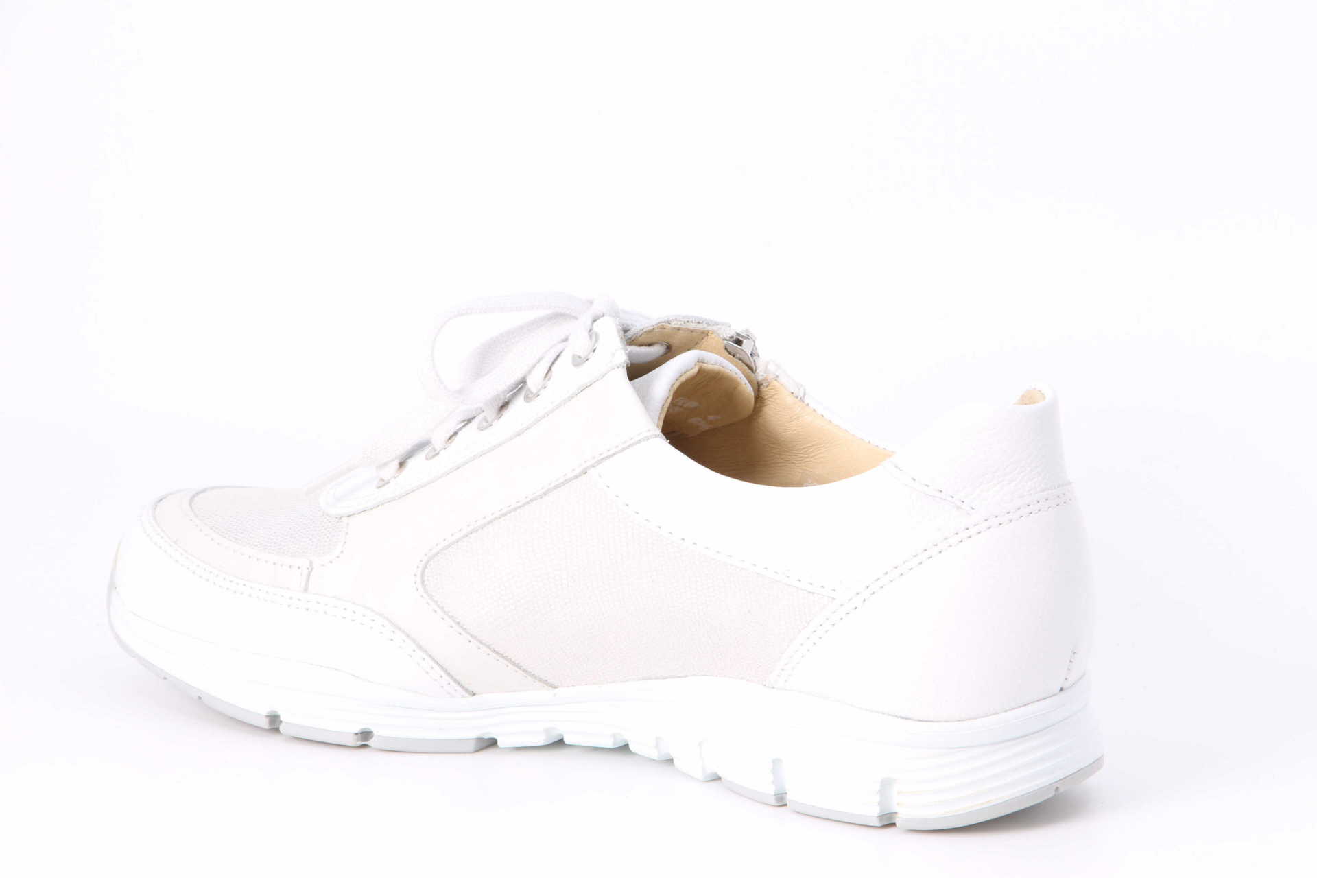 Sneaker für Damen. Ultraleicht, extrem bequem und in Handarbeit und aus hochwertigsten Materialien hergestellt. Der zusätzlich zur Schnürung angebrachte seitliche Reissverschluss erleichtert den Ein- und Ausstieg. Die Schaftrand-Polsterung mit Fersenschutz und Kappentasche sorgt für einen extrem hohen Tragekomfort und gibt zusätzlichen Halt. Die superweiche SOFT-AIR-Zwischensohle reduziert Auftrittsstösse auf ein absolutes Minimum. Das schont die Füsse, entlastet Gelenke und Bandscheiben und sorgt für ein gesundes Fussklima. Für ein ermüdungsfreies, moosweiches Gehen. Ein SCHOCKABSORBER im Fersenbereich der Sohle reduziert harte Auftrittsstösse auf ein absolutes Minimum und gewährleistet maximalen Schutz der Ferse. Eine ultraleichte Sohle vereint höchste Flexibilität mit unvergleichlicher Leichtigkeit und ermöglicht federleichtes Gehen. Das auswechselbare Fussbett lässt sich durch individuelle (auch orthopädische) Einlagen austauschen. Das Lederfutter sorgt für ein gesundes Klima im Schuh.
